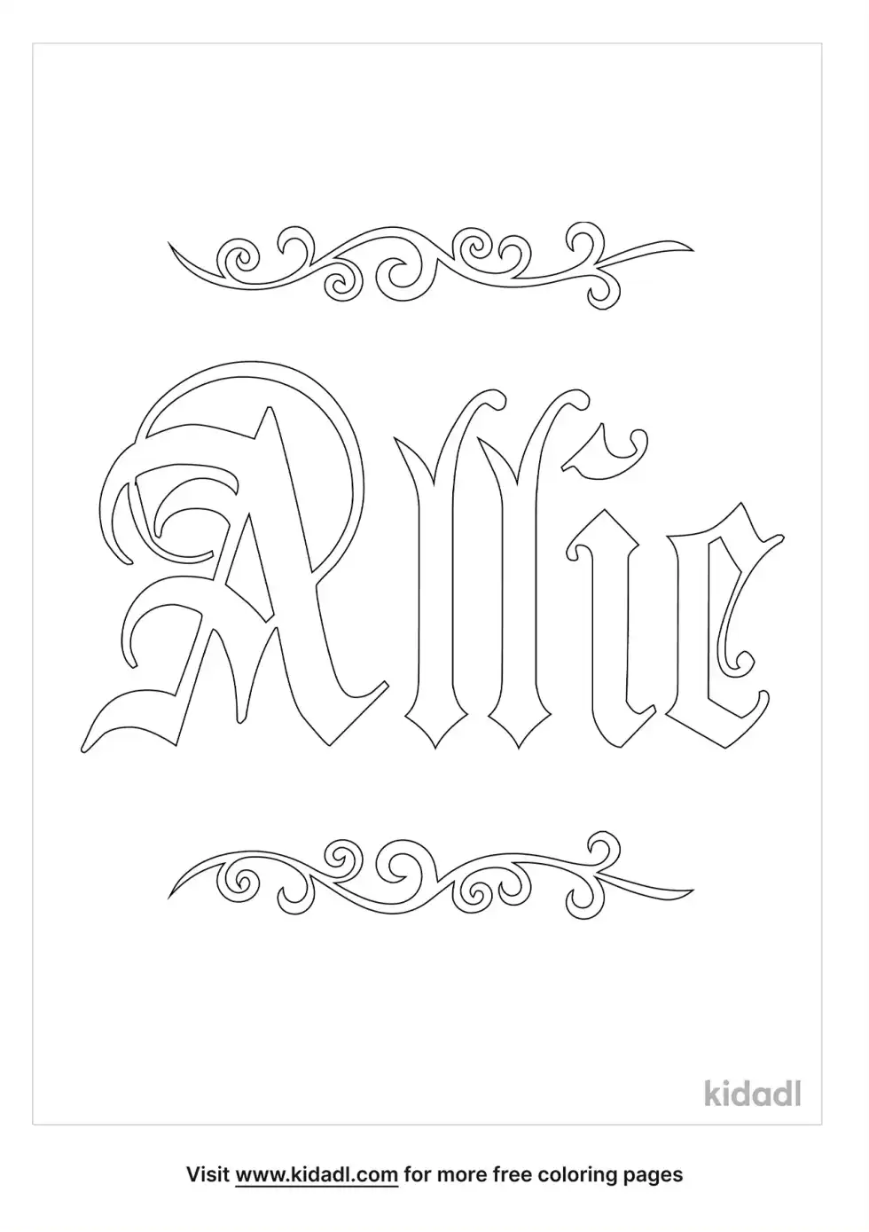 Allie Caligraphy Coloring Page