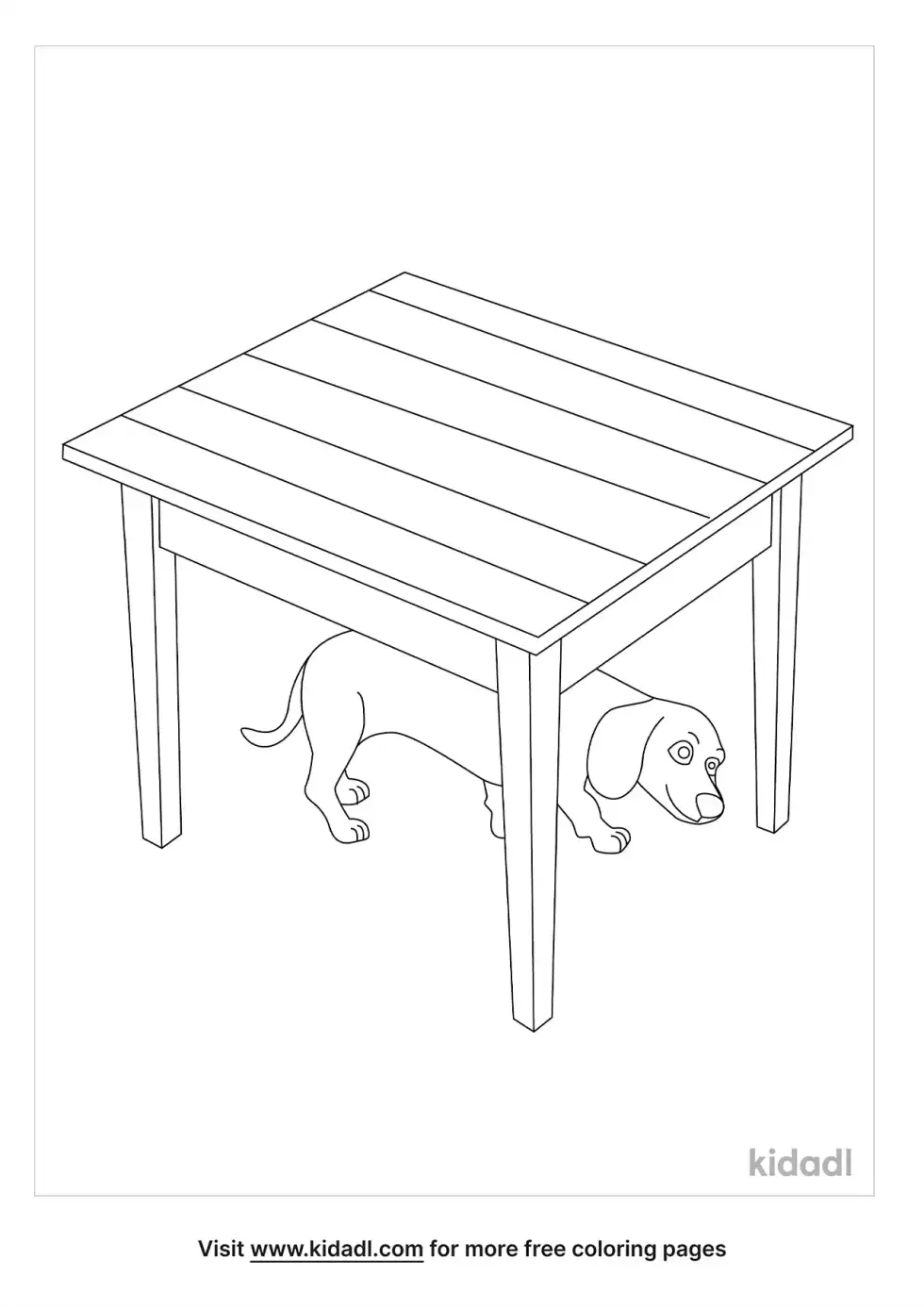 Dog Under Table Coloring Page