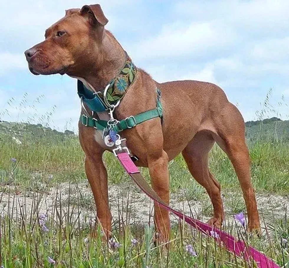 * Please note that this is an image of a Pit Bull, not a Golden Retriever Pitbull mix specifically. If you have an image of a Golden Retriever Pitbull mix, please let us know at hello@kidadl.com.